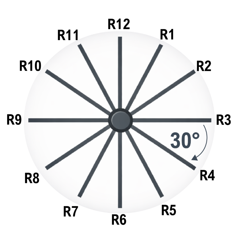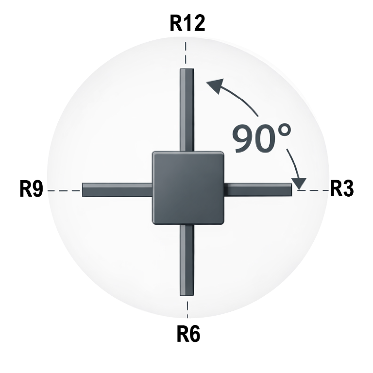 Das Schildersystem KONNI® Rund 65 hat ein 45°-Winkelraster mit insgesamt 8 flexiblen Steckoptionenen, die auf unterschiedlichen Höhen oder auf gleicher Höhe eingesteckt werden können.