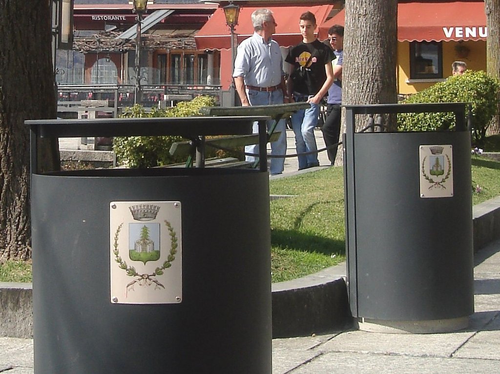 Abfallbehälter mir Ring oder Innenbehälter; mit Abdeckung und integriertem Ascher