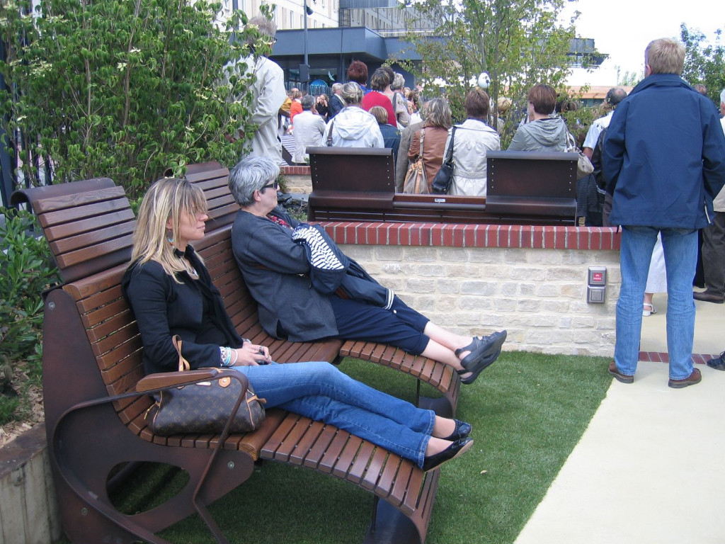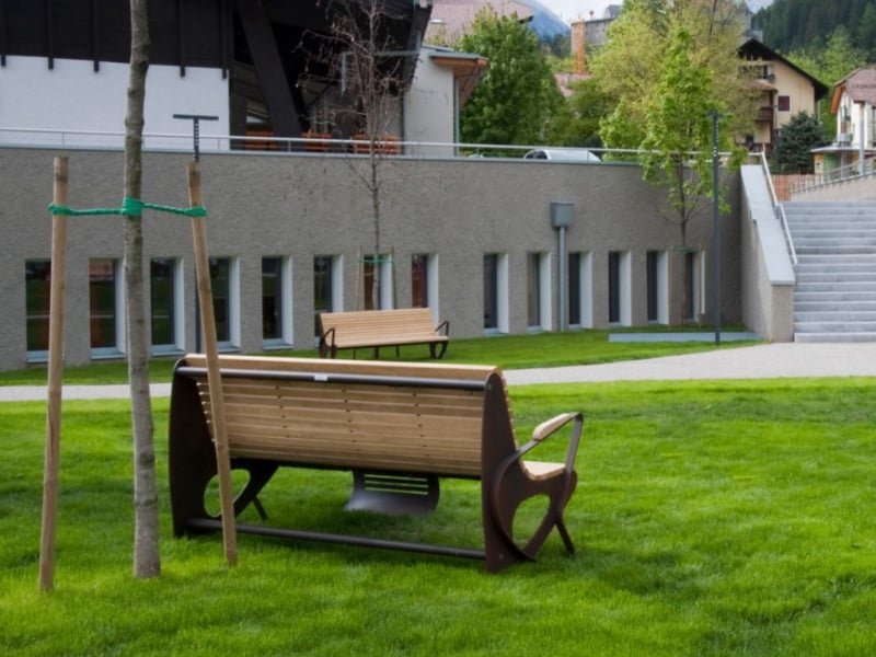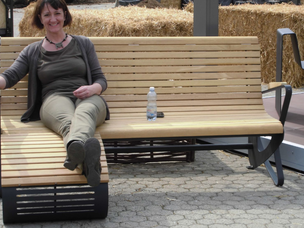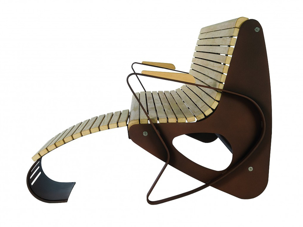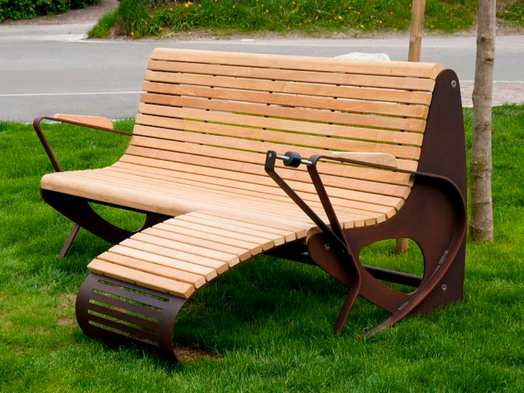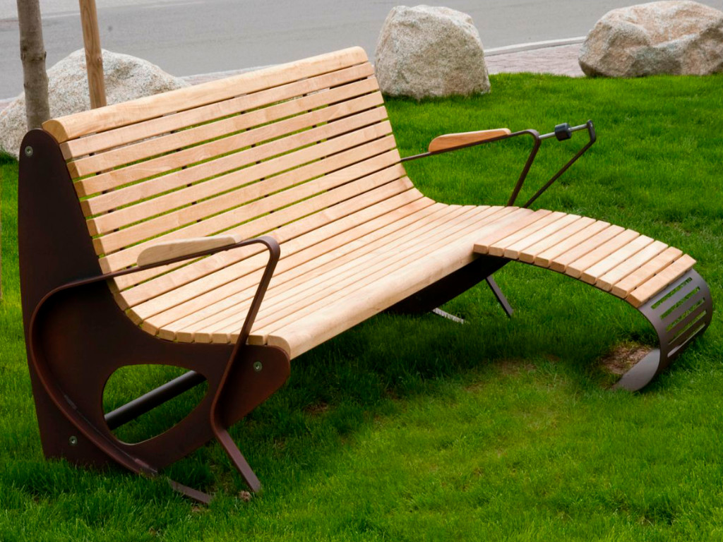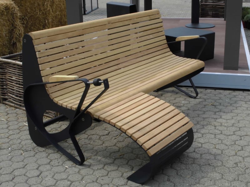 Parkbank mit Rücken- und Armlehne und Fußbank