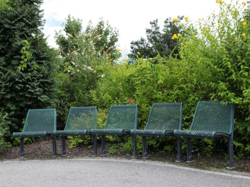 Stuhl oder Parkbank mit Rücken- und Armlehne