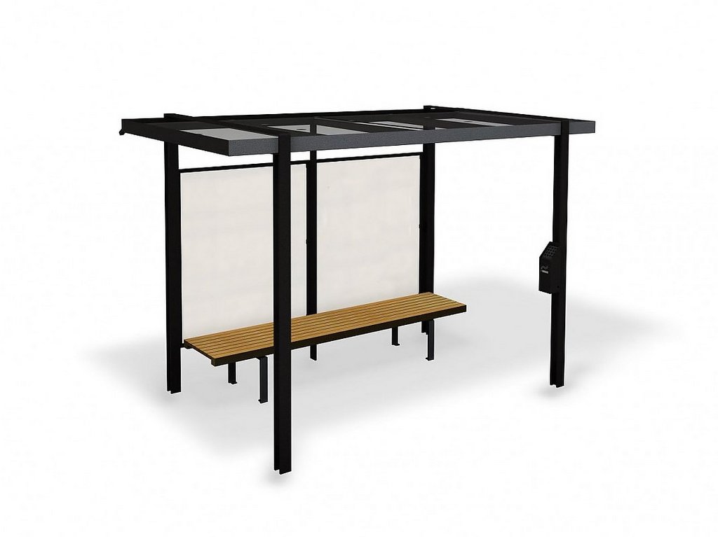 Seitenabdeckung aus Polycarbonatglas, Lochblech oder Paneelen aus Hartholzbohlen