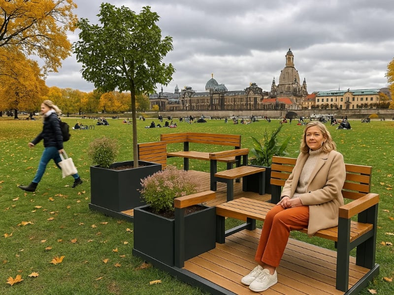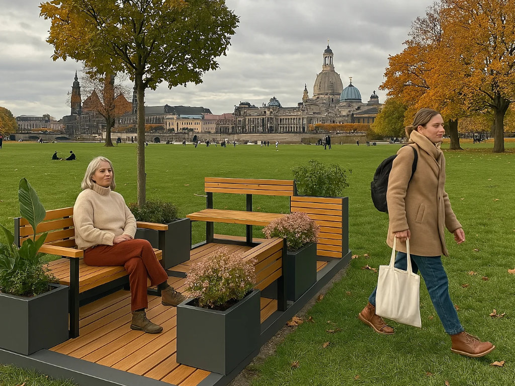 Der „Pocket Park Square“ verwandelt kompakte urbane Flächen in lebenswerte, grüne Aufenthaltsorte. Grundlage ist eine modulare Plattform aus FSC-zertifiziertem Hartholz, deren Bohlen je nach Wunsch quer oder längs verlaufen und wahlweise behandelt oder unbehandelt geliefert werden. Sie entspricht in ihrer Grundfläche einem Standardparkplatz und kann je nach Bedarf mehrfach aneinandergereiht werden. Pulverbeschichtete Metallkomponenten, in einer RAL-Farbe deiner Wahl, sorgen nicht nur für Stabilität, sondern auch für eine harmonische Integration in die Umgebung.