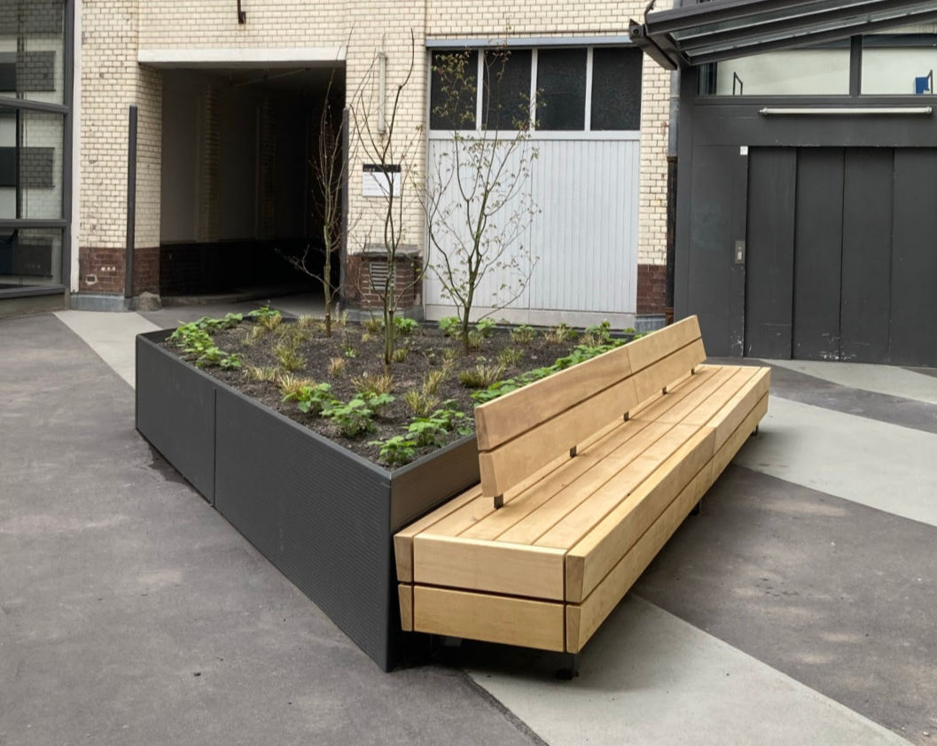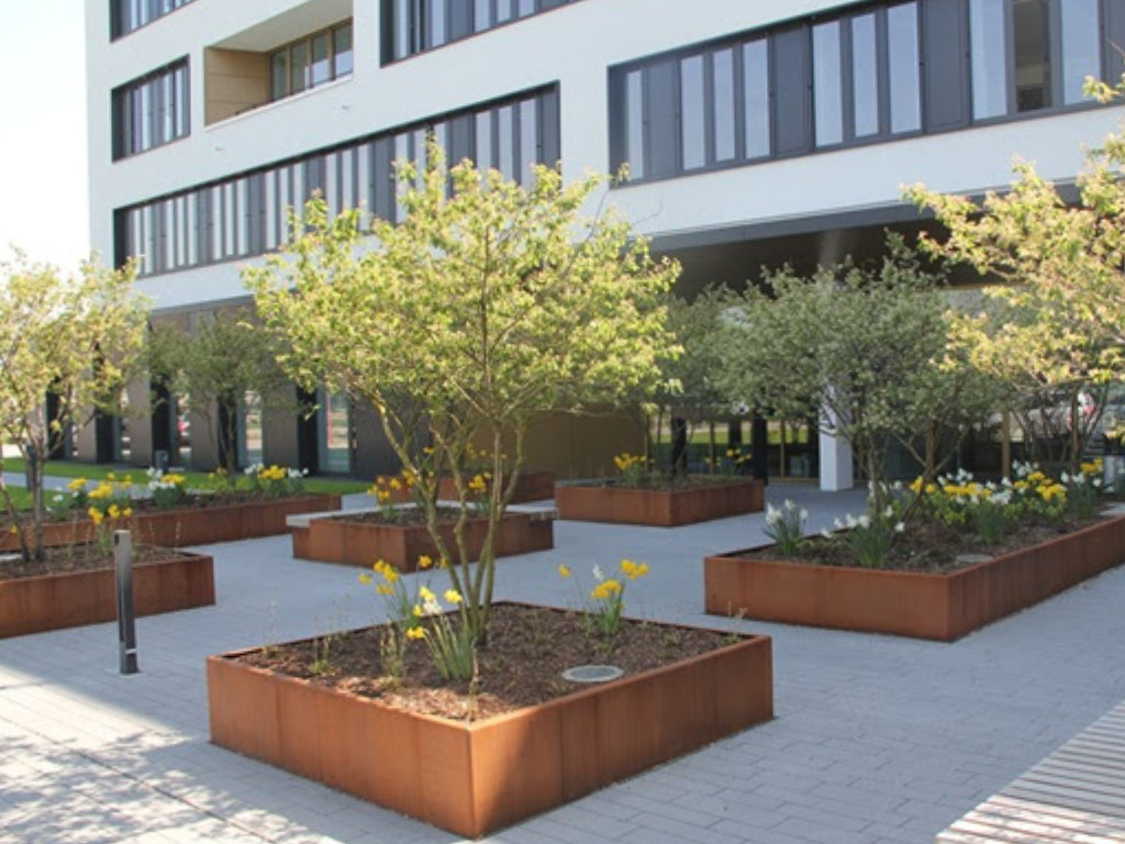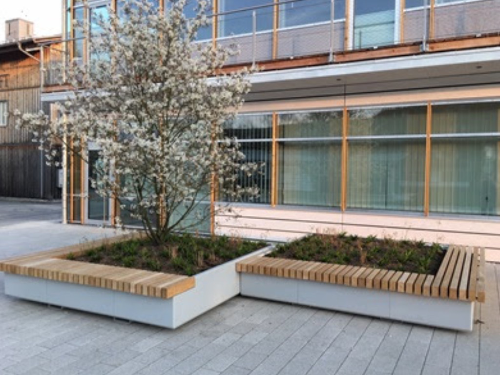 Unsere bodenoffenen Hochbeete von euroform-w sind ein idealer Baustein in der städtischen Begrünung. Wasser kann direkt in den Boden versickern und auch größere Pflanzen finden über einen langen Zeitraum genügend Freiheit für ihr Wachstum. Die Beete können in fast jeder Form frei gestaltet werden. Die Integration von Sitzgelegenheiten schafft einen attraktiven Aufenthaltsort.