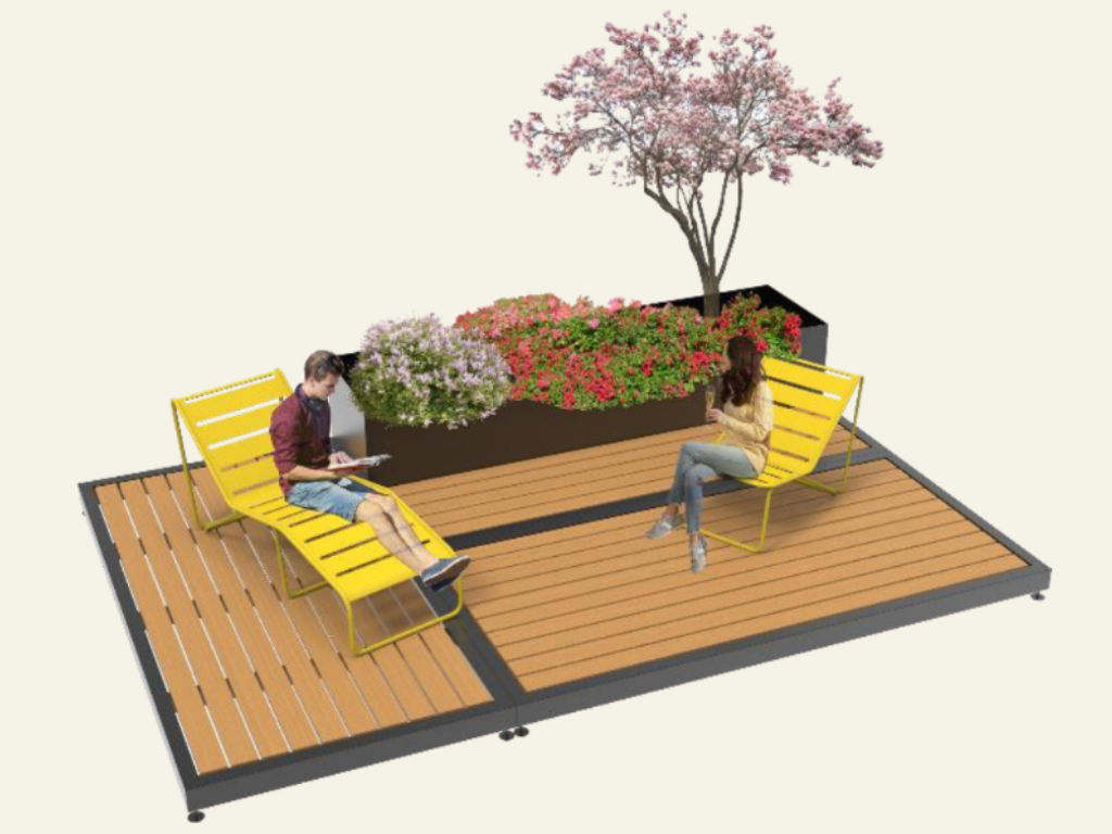Erhöhte Plattformen mit sanften Rampen bieten barrierefreien Zugang zu öffentlichen Bereichen und Veranstaltungen. Sie ermöglichen es, auch in unebenen oder historisch geprägten Stadtgebieten barrierefreie Aufenthaltsorte zu schaffen.