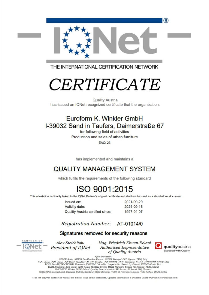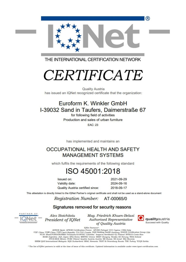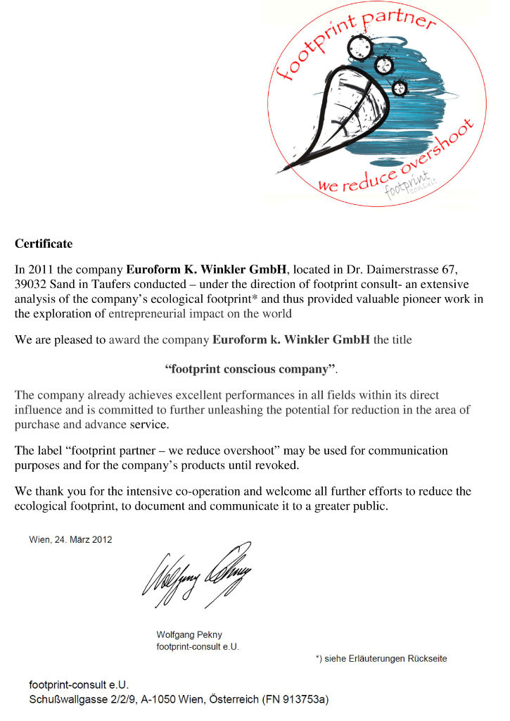 Unser Hersteller euroform w hat sich dazu verpflichtet, strenge Richtlinien in seiner Organisation umzusetzen und einzuhalten, was wir zu 100% unterstützen.